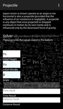 -Projectile solver: Solves problems by requesting, Vo, Yo, Ɵ (Angle). Displays time, and distance. More combination of variables would be added soon.