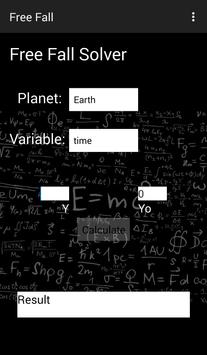 -Free Fall solver: Solves basic free fall problems in two variables, t = Time, v = Final Velocity.