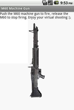 Turn your android device into a virtual machine gun. Enjoy this virtual heavy machine gun. Settle mock fights with your friends and have some fun. Or just fire away in your imagination to relieve some stress.