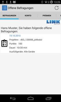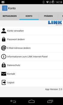 LINK Research offre ai membri dell'Internet Panel di LINK la possibilità, tra l'altro, di compilare le indagini tramite una App, di gestire i dati di base o di consultare lo stato dei premi già ricevuti. Con LINK Research vede in qualsiasi momento quali sondaggi sono ancora aperti e trova interessanti informazioni sui risultati delle indagini.