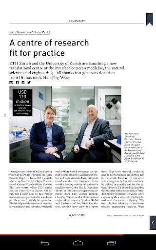 Globe, the magazine of ETH Zurich and ETH Alumni, is published jointly by ETH Zurich and the ETH Alumni Association. The quarterly magazine for everyone who wants to stay connected with ETH Zurich and its alumni contains: