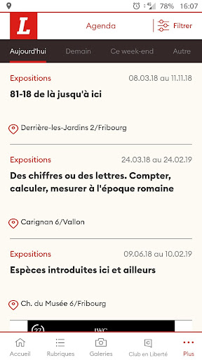 La agenda cultural: ¿Qué hacer hoy, mañana o este fin de semana? La agenda cultural de la libertad integrada en la aplicación le permite mantenerse informado de la oferta cultural en su región.