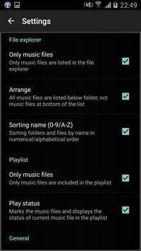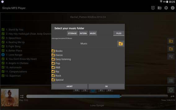 In the app file explorer, the folder and the music files can be selected quickly and easily. The player then plays all music files in this folder.