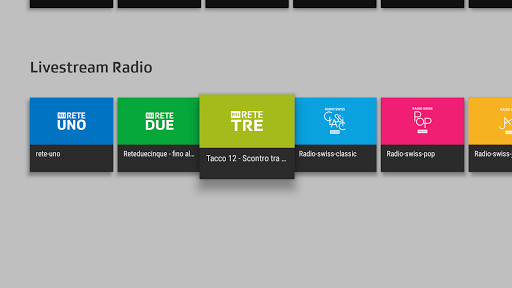 Avec l'application RSI, vous avez les chaînes de télévision de la SSR en direct grâce à Internet et à la boîte Android.Par exemple, vous pouvez suivre les programmes généralisés par RSI LA1 ou LA2 sur votre grand écran.Les radiodiffuseurs radio SSR sont également disponibles.ATTENTION: En ce qui concerne les droits de diffusion en direct, l'offre de télévision en direct est limitée au territoire suisse.