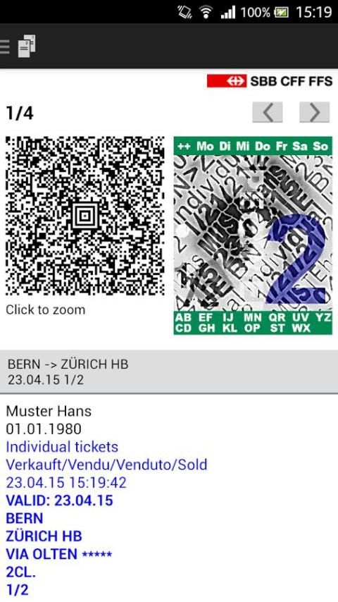 • buy and display public transport tickets for Switzerland for up to eight passengers.