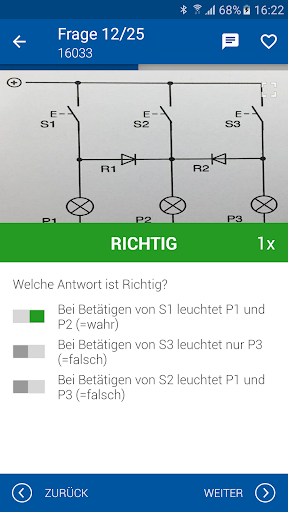 Mit SPASS lernen und ENTSPANNT an die Prüfung gehen. Durch die knifflig gestalteten Multiple Choice Fragen, zusammengestellt von Prüfungsexperten der entsprechenden Lehrgänge und einer Gruppe von dipl. Elektroinstallateuren mit langjähriger Berufserfahrung und zusätzlichen Aus- und Weiterbildungen. Regelmässiges lernen wird sich bewähren!
