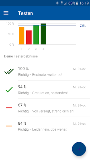 - Prüfungsmodus, generiere dir eine Prüfung zusammengestellt aus allen Kategorien von deinem Lehrgang. Lerne nichts, was dich gerade nicht betrifft.