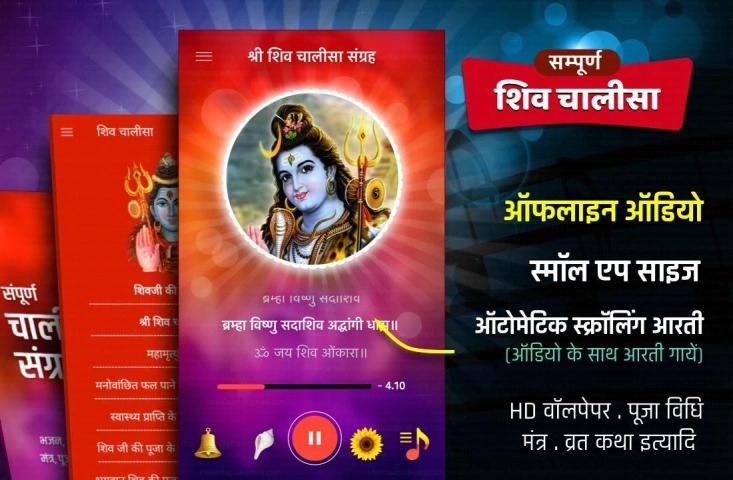 Shiv Chalisa App - Shiv Aarti, chalisa, pujavidhi, vartkatha and various mantra,