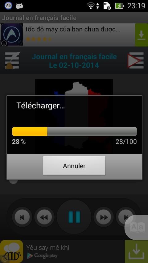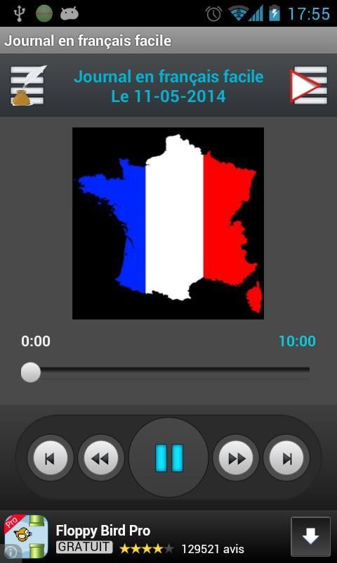 फ्रेंच आसान, आप फ्रेंच में RFI पर "आसान फ्रांसीसी जर्नल," 21h में दैनिक प्रसारण 10 मिनट की खबर (पेरिस समय) को सुनने की सुविधा देता है कि आवेदन. इस आवेदन के साथ आप पिछले दिनों से नवीनतम समाचार और समाचार सुन सकते हैं.