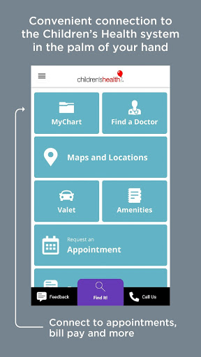 The Children’s Healthˢᵐ mobile app is one more way we’re by your side, every step of the patient journey. Navigate from your front door to our front desk, find a convenient parking lot and mark your spot, receive real-time guidance to any location throughout our hospitals and connect to your patient portal for easy access to appointments, bill pay and more.