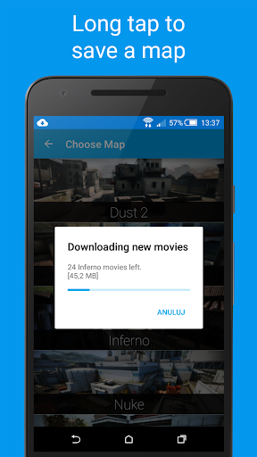 Just one long tap while choosing a map to download all of its movies.