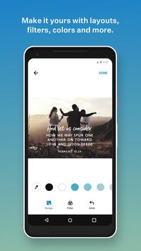 Just as with the photos you take using Bible Lens, Discover lets you experiment with colors, fonts, and more, saving your favorites and sharing to your heart’s content.