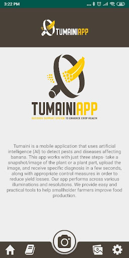 Tumaini is an Artificial intelligence-based solution that enables banana farmers to identify and treat plant diseases and pests. This app works with just three steps- take a snapshot/image of the plant or a plant part, upload the image, and receive a specific diagnosis in a few seconds, along with appropriate control measures in order to reduce yield losses. Our app performs across various illuminations and resolutions. We provide easy and practical tools to help smallholder farmers improve food production.