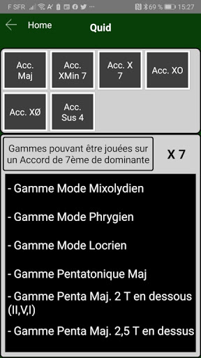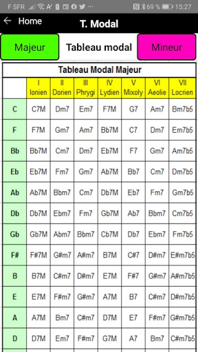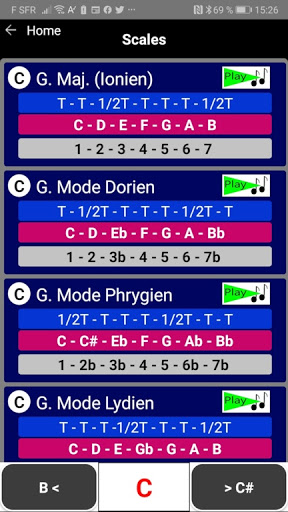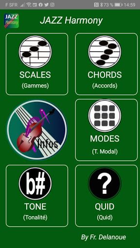 Jazz Harmony is a great help for musicians playing mostly jazz. All scales are represented in every tone. Major, minor, blues, augmented, diminished, pentatonic scales etc ...