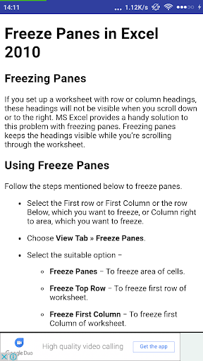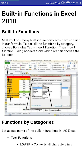 I found this app very helful dor learning Microsoft Excel. Didnt know nothing when i start a week ago and now i can do so many things in excel thanks to this vreat app.