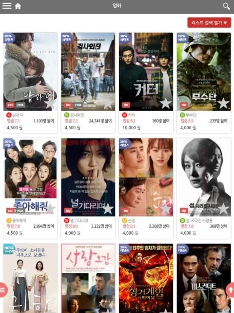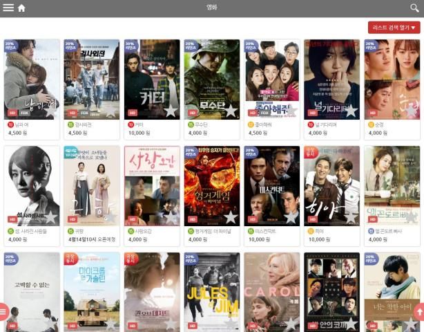 - 장르별 제공 영화, 공포, 슬픈영화와 멜로, 액션, 무협, 스릴러, 판타지SF, 독립, 인디영화까지