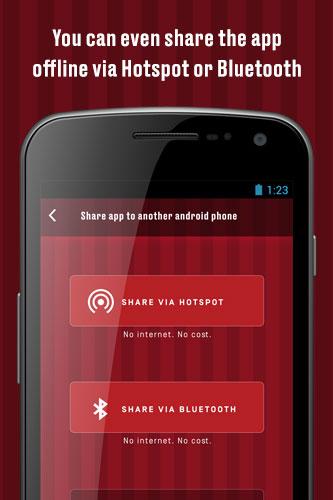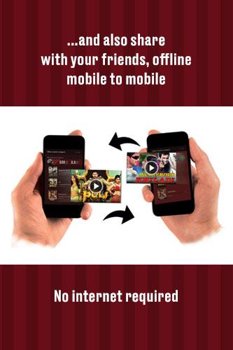 Once you have the app and movies, you can share them with your friends and family for free. First, share the app by hitting the ‘Share App’ button. Then share the movies. Phone to phone. No data charges.