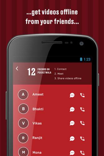Get videos from friends who are using the Pocketwala app