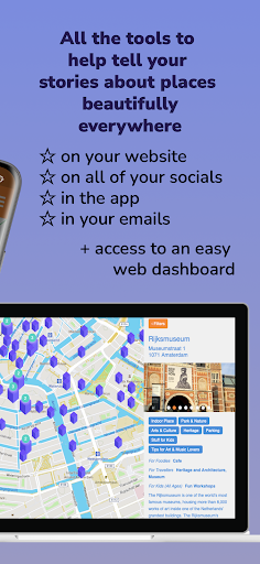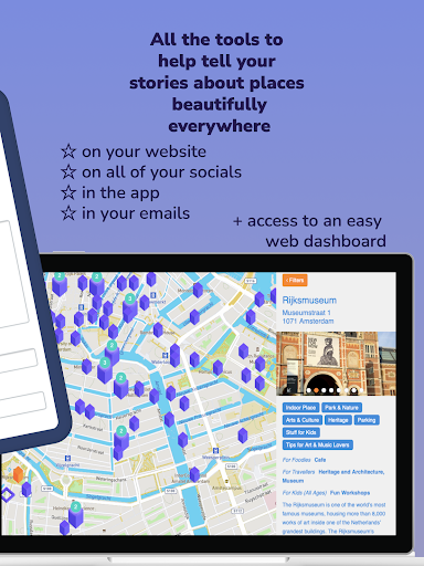 Here's our little secret: Your community and all your places first of all live in the Map Your City mobile app. But the Map Your City platform helps you with your website too. A ton of valuable features get you the best & smartest location marketing tools available, that help you build stunning web Maps and Landing pages for example.
