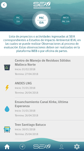 Aplicación Móvil mediante la cual el Servicio de Evaluación Ambiental provee de información a la ciudadanía sobre los proyectos que son sometidos al Sistema de Evaluación de Impacto Ambiental, generando avisos sobre la información que sea de interés para cada usuario.