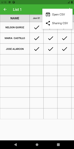 Register attendance quickly, allows you to create groups for each course differential, or some group of person, also you can create a compatible csv file Excel or Number, delivering a worksheet with the days and total attendance for each individual. And share with other people.