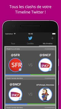 Retrouvez tous les clashs Twitter de votre Timeline et soyez alerté instantanément dès qu'un Twittos que vous suivez entre dans un clash !