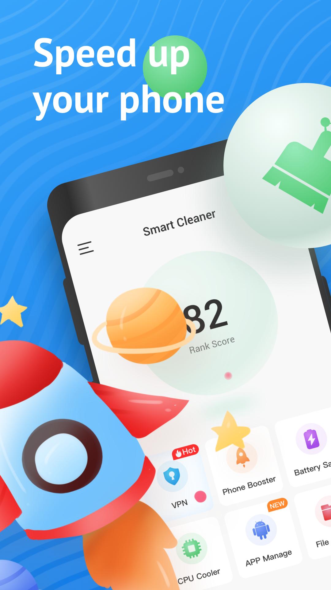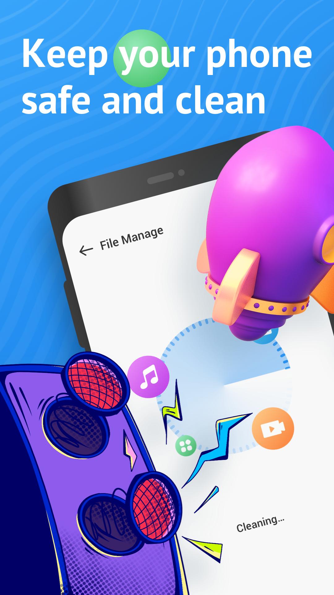 Smart Cleaner will clean up garbage that slows down your phone. With our powerful analysis engine, you can deeply clean up the garbage, applications, invalid downloads, browser history and clipboard content in your mobile phone, so as to obtain more storage space. In addition, you can also deeply clean up app junk, and you don't need to worry about deleting the wrong data. One click to quickly clean up garbage and improve the speed of mobile phone!