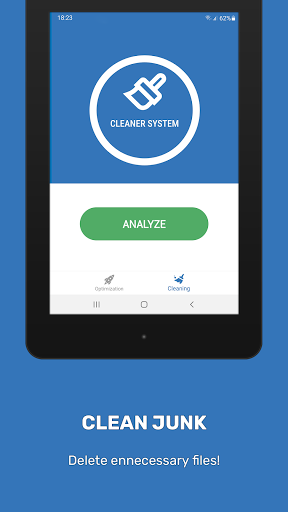 Cleaner System - powerful set of tools for optimize your Android device. Free up space, delete unnecessary files, speed up games and optimize your system with simple steps. The unique development will be significantly reduce the load on the CPU, speed up the operation of applications, and protect your data from intrusion by third parties. Cleaner System: Acceleration, Optimization & Cleanup is a great and working tool for solving everyday tasks.