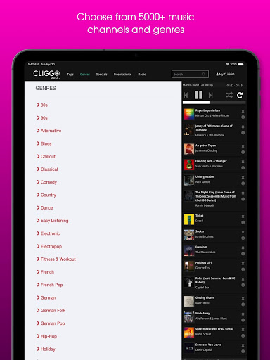 : No matter you are a fan of hip-hop and R&B music or you prefer classic and jazz music, there is always some fresh content for you. Simply browse through available genres, choose the one suiting your mood at the moment, and stream your favorite music genre for free: