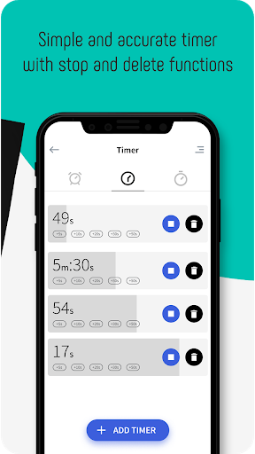 • Handy widget allows you to see the time in style on your home-screen and quickly access the alarms screen.