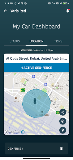 - The geo-fencing feature allows you to set up a geofence in the app and get notified when a vehicle leaves it, thus ensuring that your vehicle remains within a safe area.