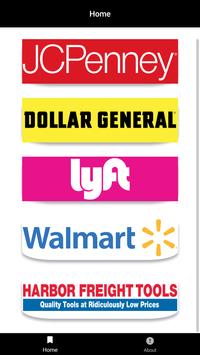 Coupons from your favorite retailers such as JCPenney, Dollar General, Lyft, Walmart, Harbor Freight Tools
