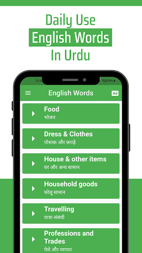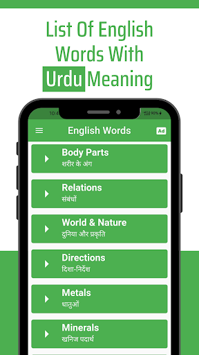 • An excellent book: This is not only an app but also an English to Urdu vocabulary book. Get every kind of word that is useable in every sphere of life.