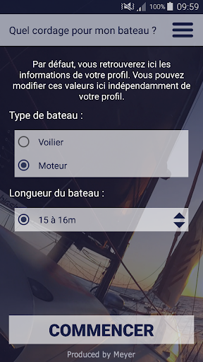 Mobil app My Rope: What rope for my boat? is a simple calculation tool, fast and efficient. To determine the rope that best meet your needs, just 4 steps are necessary: