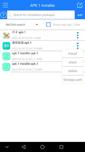 When WeChat receives an APK file forwarded to your app by someone else, it will automatically add .1, causing the system to fail to recognize an application installation package. This application intercepts the suffix of apk.1 to eliminate the need for users to modify the file suffix to install after downloading. When it comes to problems, sometimes it takes a long time to find the file, or even can't find it. This software perfectly solves the user's pain point. After installation, the user can directly open the apk file in WeChat in the future.At the same time, it can clean up the entire apk file。