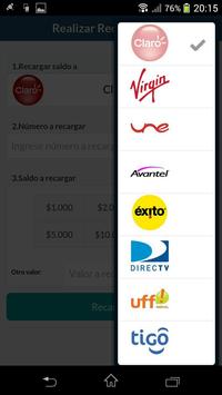 Disponible inicialmente para operadores en Colombia permite recargas electrónicas a CLARO, MOVISTAR, TIGO , AVANTEL, VIRGIN, UNE, EXITO, UFF y DIRECTV prepago (entre otros).