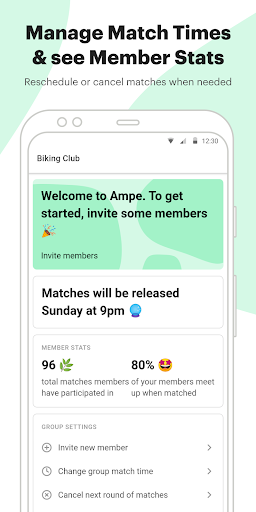 • Once members have joined the group, Ampe automatically matches members for in-person coffee chats and lunches.