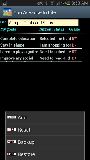 Several people can maintain their life goals on one mobile phone and invoke them on the screen from multiple backup files!