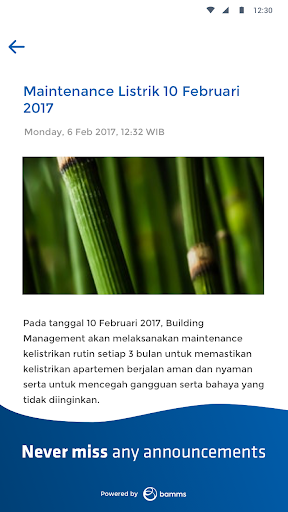 Introducing Tenant BCA Foresta by BAMMS, a mobile application that allows all tenants to receive information about their building and units, to report problems or incidents, to create and manage inquiries, and to request for any value added services provided by the building management.