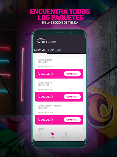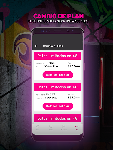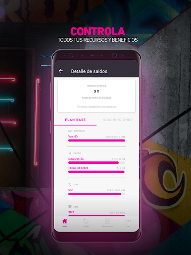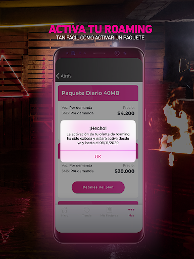 • Accede desde la pantalla de inicio, compras de paquetes, recargas y facturas.
