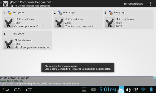 - Mira los TOP 10, más Perreadas, usuarios más Famosos últimas composiciones compartidas.