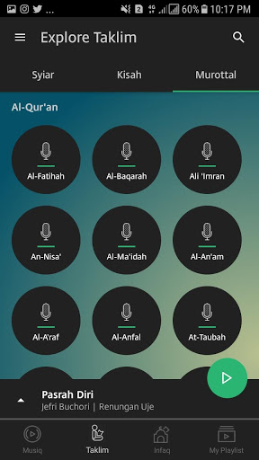 - Pilih Musik & Lagu Religi favoritmu atau konten taklim (Dakwah, Kisah, Murotal Al-Quran) yang kamu suka lalu dengarkan di mana pun dan kapan pun. Semuanya gratis!