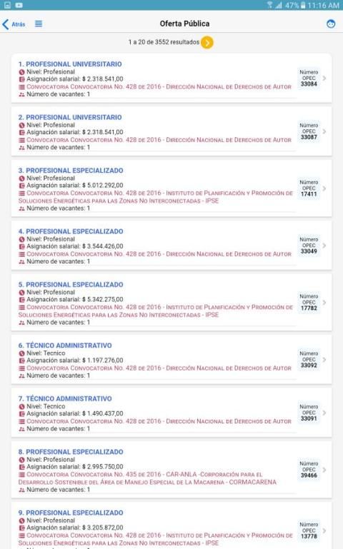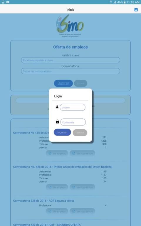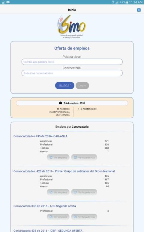 SIMO Mobile is an application for mobile devices developed by the National Civil Service Commission, where citizens can access general information available on the Support System for Equality, Merit and Opportunity (SIMO), in relation to public Administrative Career offers - OPEC * for the provision of permanent jobs in public institutions of Colombia plant.
