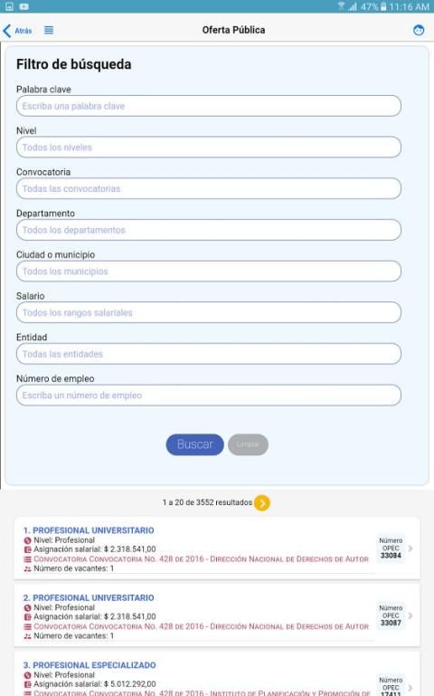 Esta versión permite hacer la consulta de la Oferta Pública de Empleos y hacer seguimiento a sus