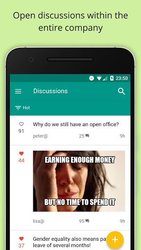 Share your thoughts, mood and ideas with co-workers and stay up to date with everything that's happening within your company. You can choose whether to stay anonymous or have more credibility by using your real name.