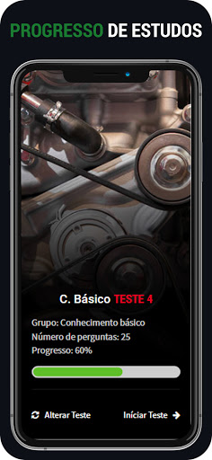 Com o aplicativo, poderá praticar e preparar o seu exame de código em qualquer momento e em qualquer lugar.