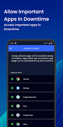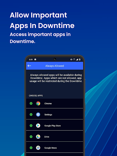 ✅ Always Allow: Allow some important apps like banking, e-mail etc. even in the downtime.