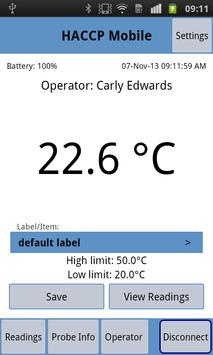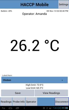Probe, as a thermometer. In seconds you can turn your Android Device into a professional HACCP solution. Create custom lists for users and food items with free Windows® accessory software, then email them to your mobile device. Assign high and low temperature settings for each food item. Store temperature readings with the touch of a button and add user notes and corrective actions where needed. Email the results to your inbox to store electronically as a CSV file.