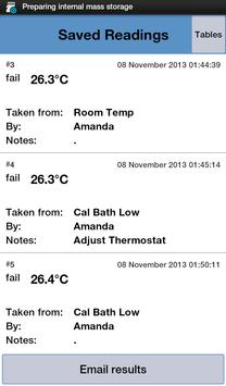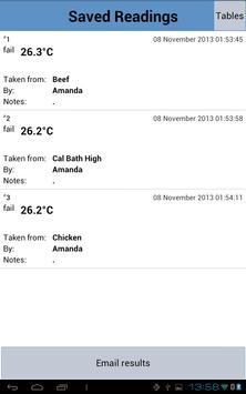 Saved readings can viewed at any time by tapping View Readings. They are displayed in order with the
