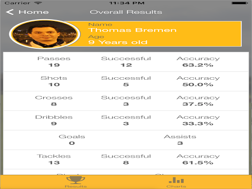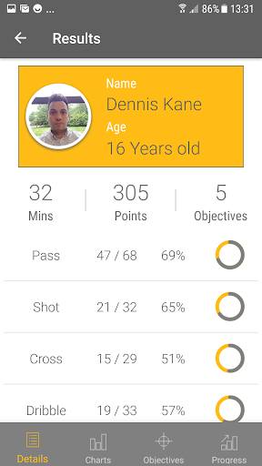 Record, monitor and improve your football skills. View the progress that you, your friends or your children and probably your academy students are making at the training ground or real football matches.
